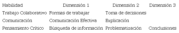 Antes y después de la práctica pedagógica (ABP), se evaluó en los estudiantes las habilidades transversales mediante una rúbrica de elaboración propia que contempla el nivel de desarrollo de cada habilidad en 5 tramos: evidencia limitada, emergente, en desarrollo, acelerado y avanzado. Para cada una de las habilidades se definieron los siguientes indicadores: