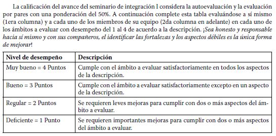 Sesión III: Presentaciones avances Seminario de Integración I, 6 horas presenciales un mes después.