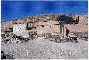 En las últimas décadas la mejora de la red vial y las políticas focalizadas en la mejora de la infraestructura social, han permitido el acceso parcial a la energía eléctrica y la incipiente cobertura de servicios de telefonía móvil y las telecomunicaciones. Asimismo, desde el Estado Provincial se desarrollan políticas activas para el impulso del turismo como actividad económica y de la explotación minera que requiere de infraestructura y servicios adecuados. Sin embargo, las condiciones actuales de vida de la población rural revelan altos valores de vulnerabilidad y desigualdad social. En la figura 2 puede observarse que la vivienda de la familia de Belén cuenta con paneles solares, distribuidos a través de un programa financiado por el Banco Internacional de Reconstrucción y Fomento (BIRF), coordinado por la Secretaría de Energía de la Nación. Los pobladores de la región tienen dificultades para proveerse de medios que permitan el calentamiento de agua para el consumo de alimentos e higiene y deben afrontar la hostilidad del clima por la escasez de leña (Ramos Caro et al., 2019).