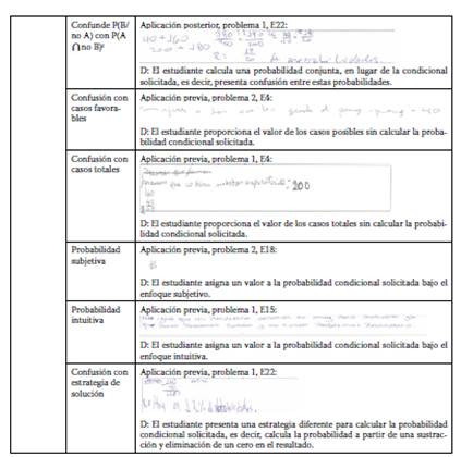 Además, se observa la disminución de participantes que usan la regla de tres y la ausencia de conflictos como confusión con casos favorables; esto refleja que la experiencia de enseñanza fue útil en solucionar conflictos semióticos respecto a la lectura de una frecuencia simple, en especial, con aquellos que no entregaban respuesta o confundían la probabilidad con un valor de la tabla. Sin embargo, no existe mejora en conflictos semióticos asociados a concepciones erróneas de la probabilidad, en particular, el de la probabilidad subjetiva e intuitiva, lo que sugiere que presentar prácticas y ejemplos de su lectura y cálculo, en situaciones contextuales, no es suficiente para que los estudiantes superen sus sesgos.