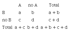 1- Frecuencias absolutas marginales. Estas corresponden a las cantidades en la fila inferior y en la columna derecha; por tanto, pueden ser por columnas (a+c y b+d) o por filas (a+b y c+d).