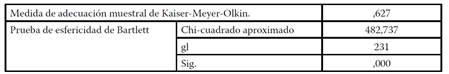 En la Tabla 2 se observa un valor de KMO = .627 por lo que aplica a los datos muestrales del análisis.