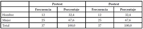 En el estudio participaron 37 estudiantes de 4º año del curso DDI Redes y Comunidad de la carrera de psicología de la UDD. Las tablas 2, 3 y 4 presentan diversos aspectos de los estudiantes que respondieron a la encuesta: