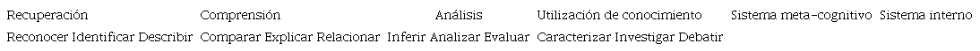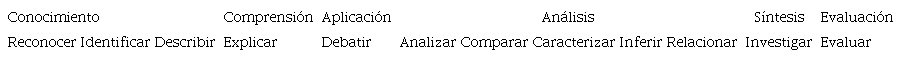 Si consideramos como uno de los referentes principales para este estudio la taxonomía de Bloom et al. (1956), donde se clasifican las habilidades de orden inferior según categorías identificadas por sustantivos tales como, conocimiento, comprensión, aplicación; y de orden superior, las categorías de análisis, síntesis y evaluación, podemos señalar que: