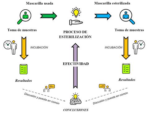 La búsqueda de información permitió al alumnado tener una visión general de distintos protocolos de esterilización de mascarillas, lo que les permitió seleccionar, por consenso, dos de ellos para llevarlos a cabo en el aula: