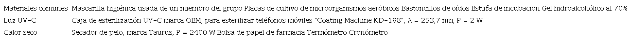 Centrándonos en los métodos físicos, Mills et al. (2018) indican que la irradiación germicida ultravioleta (UVGI) con lámpara doble (superior e inferior) de 36 W y con un tiempo de exposición de 148 segundos, produce la inocuidad sobre las mascarillas y la efectividad de desinfección bacteriana con reducción de 7 log, una expresión usada en el área de la medicina y que equivale a una reducción porcentual del 99,99999% de los microorganismos iniciales referenciados, lo cual satisface las exigencias (US Department of Health and Human Services, 2004) de la Administración de Alimentos y Medicamentos de Estados Unidos (Food and Drug Administration, FDA) para el uso del término esterilización en medicina.