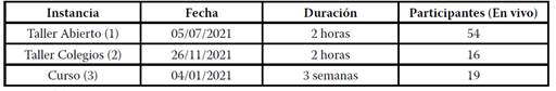 Respecto a la implementación de talleres, se calcula un alcance de 60 personas, entre los cuales se encuentran tanto docentes, como estudiantes de Pedagogía y/o Educación en práctica profesional; finalmente, se incluyó a docentes y educadoras de párvulos, de 2 establecimientos educacionales científico-humanistas de la Región Metropolitana, los cuales abarcan desde los niveles preescolares hasta fines de la educación secundaria.