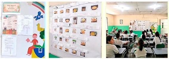 En el sexto momento, se realizó una actividad en la que los estudiantes participaron en el juego llamado Concéntrese, para identificar imágenes de alimentos típicos de la región y ampliar el vocabulario gastronómico. Posteriormente, completaron un crucigrama utilizando las palabras alusivas a la temática, el cual se publicó en el periódico mural, haciendo extensivo el ejercicio para toda la comunidad educativa, ver Figura 11.