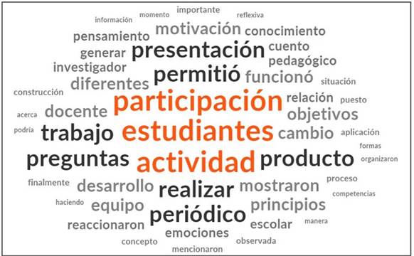 Durante el proceso de análisis de los datos recolectados, se utilizaron programas de análisis cualitativo como ATLAS.ti, versión 23.2.2, y NVivo 14 para consultar las palabras más frecuentes con generalizaciones en relación con los registros de diarios de campo resultantes de las secuencias didácticas y las entrevistas.