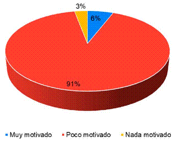 Frente a la pregunta relativa al grado de motivación que observan en el profesorado en relación con la investigación, el 91% de la muestra considera a sus pares poco motivados; mientras que el 6% encuentra que hay motivación para investigar. Finalmente, un 3% visualiza que no hay motivación alguna para ejercer esta acción. Esta estadística rotunda puede explicarse por las problemáticas que el grupo de docentes percibe que enfrenta en su ejercicio docente pedagógico.