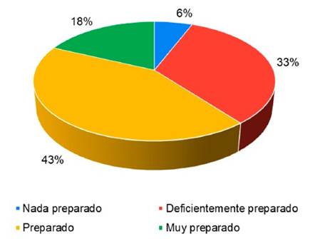 Se le solicitó al grupo de la muestra que evaluara su nivel de preparación para realizar investigación científica en el ámbito escolar. Las respuestas indican que el 43% se siente preparado para investigar, lo que se suma al 18% que señala sentirse muy preparado. Por otra parte, el 33% considera tener una preparación deficiente para realizar investigación científica, sumado a un menor -pero no menos relevante- 6% que indica no estar nada preparado.