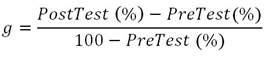 La ganancia obtenida se clasifica como: Baja (g ≤ 0,3), Media (0,3 <g ≤ 0,7) o Alta (g >0,7). Y de ese modo, determinar en función de los resultados obtenidos, el nivel de impacto obtenido por la intervención.