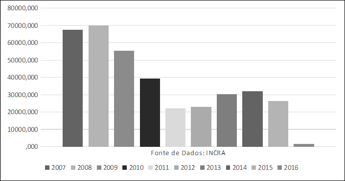 A luta pela reforma agrária se configura como uma das principais políticas públicas territoriais de busca pelo território camponês no Brasil, nos últimos anos essa reforma se consolidou baseada no número de assentamentos e ocupações provenientes da luta dos movimentos do campo e que de acordo com o relatório do INCRA foram assentados somente no ano de 2016 cerca de 27.412.1951 ha com capacidade para 1.012 famílias. Em contrapartida, do ano de 2017 em diante – durante o governo Temer – não houve nenhum registro de famílias assentadas, o que demonstra um expressivo descaso do governo para com a reforma agrária e com a agricultura familiar, ou seja, temos uma contradição entre a importância econômica-social e os investimentos destinados a agricultura familiar.