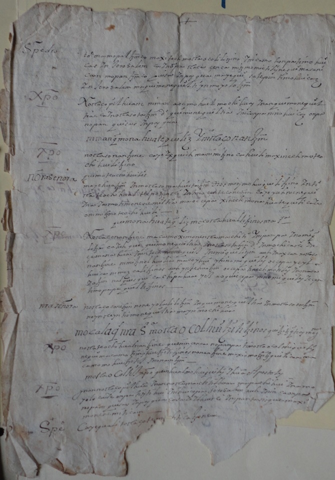 [...] Xpo notlateochihualnantzine quenin çenca nopanpa timotlaocolmiquiliz nequi macamo timohuetzititzinos nonantzine maxicmotzitzquitican macamo mohuetzitil ynonantzin [...]16