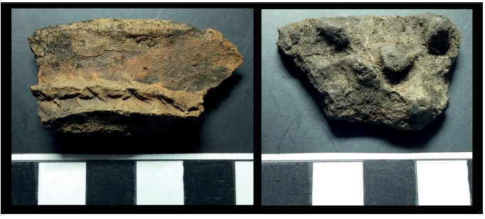 Formas em argila com decorações plásticas. Possivelmente usadas como apoio de jarros (fotos: Rodrigo Simas Aguiar, 2019).
