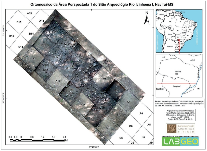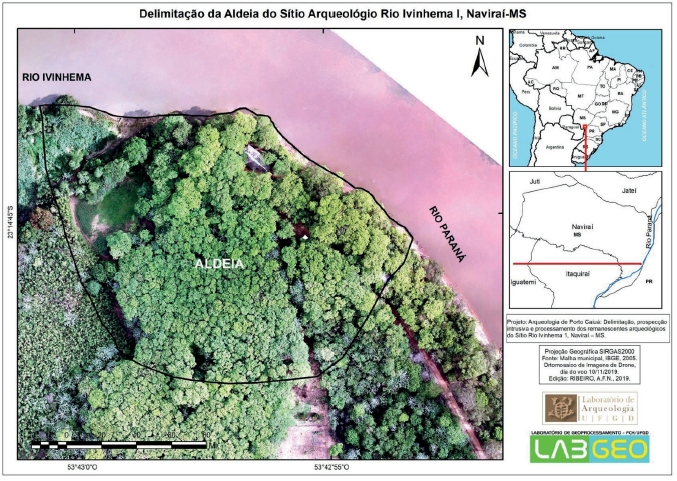 Ortomosaico indicando a área do sítio Rio Ivinhema 1 (elaborado por Angelo Franco do Nascimento Ribeiro, 2019).