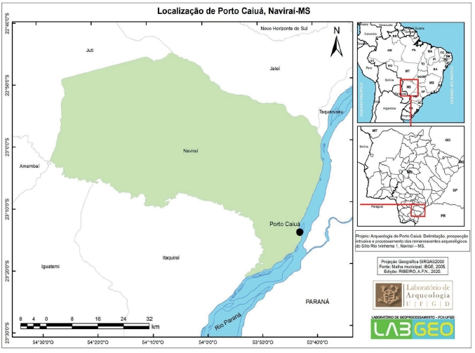 Localização do município de Naviraí e do distrito de Porto Caiuá (cartografia elaborada por Angelo Franco do Nascimento Ribeiro, 2020).