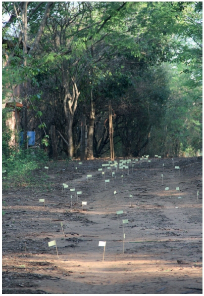 Outros espaços, como aquele da Área Prospectada 2, podem ter sido usados para a formação de campos de cultivo. Fragmentos esparsos de cerâmica mostram que o uso destes recipientes ali era menos intenso e frequente. Avaliadas estas áreas e a dispersão de material em superfície foi possível propor um modelo de dinâmica de ocupação para o sítio Rio Ivinhema 1, onde chegamos a uma área total de 24 mil metros quadrados.