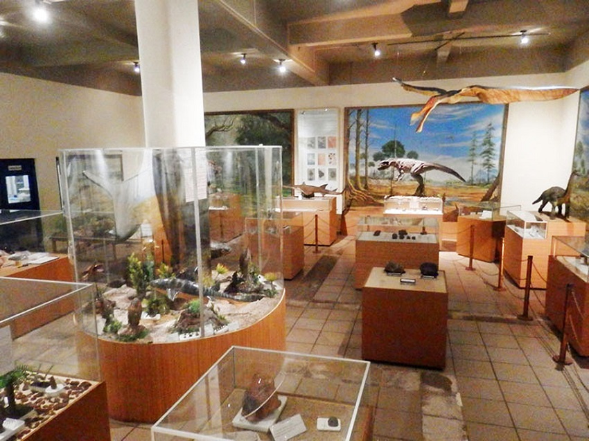 O acervo presente no setor de Paleontologia é composto por cento e quarenta e sete fósseis e dezoito réplicas de animais e plantas, além de sete painéis, uma maquete que representa um projeto de construção de um parque paleontológico, uma televisão que exibe materiais sobre o assunto tratado na exposição e três dioramas, em que cada um deles traz exemplos de réplicas de diferentes espécies de animais e plantas, reconstituindo o ambiente original em que habitavam durante o Cretáceo. Marandino e Martins (2005) explicam que a característica primordial dos dioramas é reproduzir o contexto original do objeto ou de sua utilização ao compor cenários utilizando os objetos patrimoniais do museu.