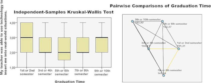 Finally, it is thought that this pandemic-related issue can be viewed as a chance to reconstruct various long-standing educational institutions and establish better and more modern academic methods that are appropriate for the current generation of students (STRIELKOWSKI, 2020). This design is crucial because, as statistical analysis above demonstrates, students who are just starting their graduation display notable disagreements with other undergraduates, particularly when it comes to the technological and pedagogical knowledge of the teachers’ content.