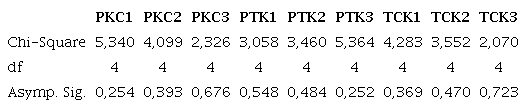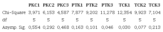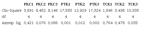 As a result of the above, the figures 3, 4, 5 and 6 show the Kruskal-Wallis’s test of independent samples for assertions PTK1, PTK2, PTK3 and TCK3 in the Course Period category.