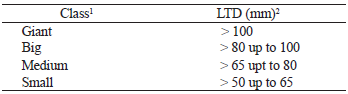 1 Brasil 1995. 2 LTD: larger transverse diameter.