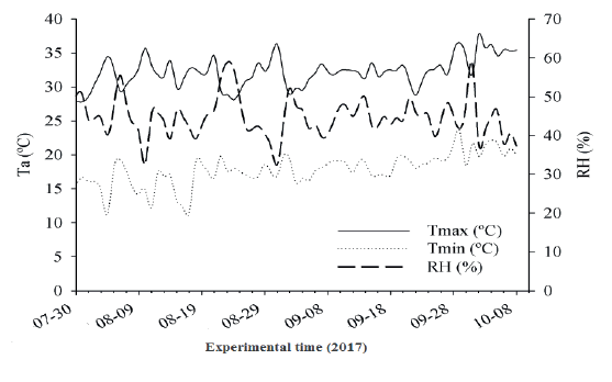 The climate of the region is classified as Aw, tropical with a dry season, according to the Köppen classification (Alvares et al. 2013). Data of maximum, average and minimum temperatures were collected from a meteorological station at the experimental area (Figure 1).