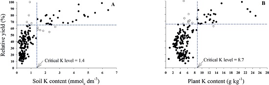 The limited natural fertility of most Brazilian soils (Briguenti et al. 2011) is directly related to the causes of low yield. The Brazilian Savanna contains highly weathered soils with a low cation exchange capacity, and most consist predominantly of 1:1 clays, which are naturally K deficient (Lopes 2005).