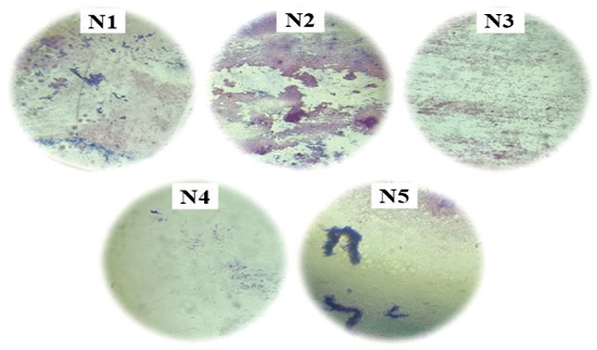 The microscopic characteristics of the N-fixing bacteria isolates from the oil palm rhizosphere are shown in Table 4, and the Gram staining of the isolates in Figure 2.
