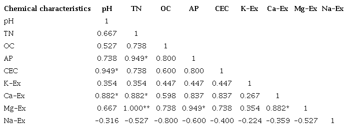 The correlation analysis for the chemical characteristics of Ultisols from the oil palm rhizosphere are presented in Table 2.