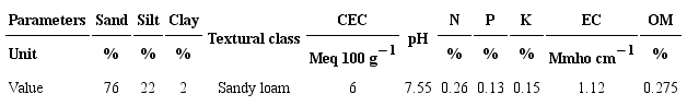 The experiment was carried out using a randomized complete block design, with three replications. The seedlings were planted at a distance of 40 cm between plants on both sides of the ridge, which had 10 plants with width of 60 cm and length of 2 m. The analysis of variance (Anova) was derived from the common diverse model for a randomized compelete block design. All measured parameters were assumed to be generally distributed, and a numerical analysis by Anova was carried out using the SAS software (version 9). The importance of the differences among the treatments was approximated using the Duncan’s test at p ≤ 0.05.