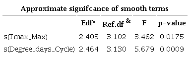 Studies have focused on understanding crop yield through the analysis of environmental variables in recent years. For instance, Heinemann et al. (2022) assessed the impact of climatic factors on common bean yield in various production environments in Brazil using GAM, revealing temperature variables as crucial factors, particularly during the reproductive phase. Porker et al. (2020) explored the infuence of temperature and photoperiod on barley phenology, identifying critical development periods with pronounced efects. Similarly, Romay et al. (2010) found that temperature-related covariates play a signifcant role in corn yield.