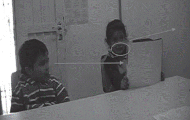 En el ejemplo 3 se presenta el intercambio entre Gimena (4 años) y Tiago (niño de la misma edad) en la condición de interacción con un par.