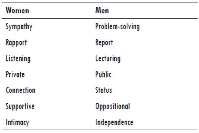 Comme le genre est un terme relationnel et la condition minimale pour être un homme c'est de ne pas être une femme, nous pourrions trouver que, dans plusieurs circonstances, les hommes sont sous pression pour se constituer en tant qu'hommes linguistiquement à travers l'évitement des formes de parole dont la première association est avec les femmes ou la féminité.