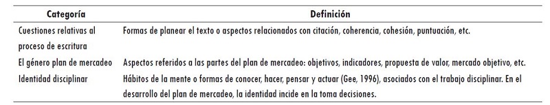 A continuación, se presentan los principales hallazgos de las entrevistas realizadas, en las tres categorías identificadas, a saber, el proceso de escritura, el género plan de mercadeo y la construcción de la identidad disciplinar.
