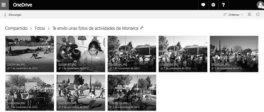 Además, en su correo, Isabel anexó ocho fotografías digitales (Figura 5) utilizando la aplicación llamada OneDrive®. Para el 2012, esta aplicación era muy popular entre algunos usuarios de correo electrónico, pues se trató de una de las primeras “nubes” para el almacenamiento virtual. Creada originalmente para los usuarios de Windows®, desde el 2012, se habilitó su uso en móviles Android®, con el nombre de Outlook®.