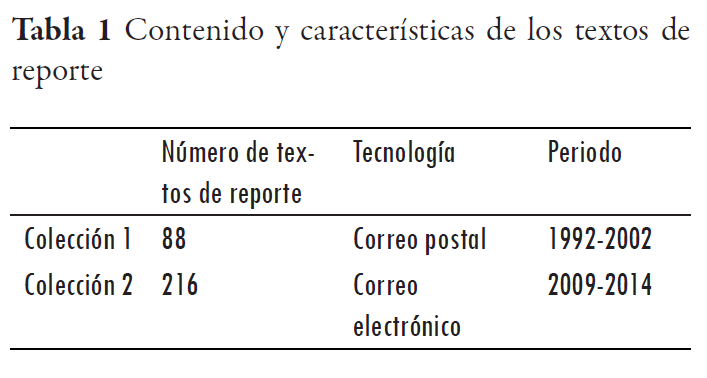 El material para el presente estudio está conformado por distintos textos escritos por los participantes de Correo Real entre 1992 y 2014, a los cuales tuvimos acceso gracias a su coordinadora. Los primeros años del programa, la comunicación entre los ciudadanos y la coordinación del proyecto se llevó a cabo a través de cartas postales; posteriormente, el correo electrónico desplazó al servicio postal. A estos materiales hemos decidido denominarlos textos de reporte considerando que la intención primaria de su elaboración y circulación era compartir datos acerca del avance migratorio de la mariposa monarca.