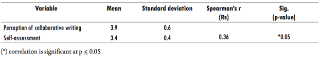 Correlation Between Perceptions and Self-Assessment in the Context of Collaborative Writing in English