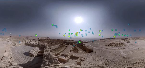 Two clips were used for the first condition (position). The videos were part of the series, Holy Land, created by Ryot in collaboration with Jaunt VR (Graham, 2015). Specifically, episodes 4 (4:13) and 5 (04:58) were used. Permission was given by the creators to use the videos in the study. The episodes depict Middle Eastern territories such as Jerusalem or Palestine. A narrator (voice-over) explains historical facts and the socio-cultural political situation. In the videos, different locations and landscapes are presented, inviting the viewers to explore the scenario. The hostess appears several times in the scene. However, her presence is not relevant to the narrative of the video. The clips were considered suitable for testing the first condition (position) due to the lack of multiple speakers and a range of landscapes, highlighting the exploratory nature of 360º videos. In this sense, participants could focus on exploring the scenarios in the clips and read the subtitles, without being required to make an effort to understand different speakers or narrative complexities.
