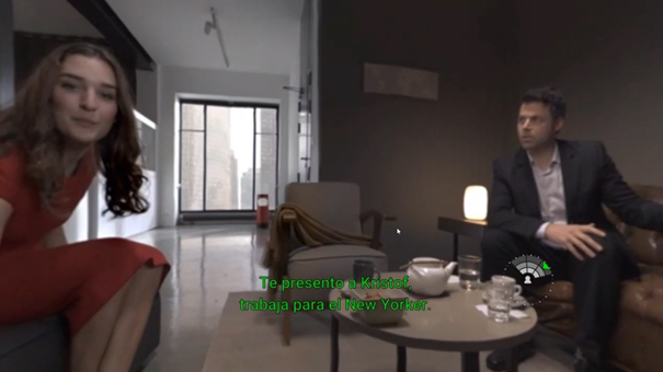 Resumen: Los contenidos inmersivos se han convertido en un medio interesante para contar historias. A este tipo de contenido normalmente se accede con unas gafas de realidad virtual, a través de las cuales el usuario, que se encuentra en el centro de la acción, tiene la libertad de mirar y explorar la escena libremente. Los criterios para determinar la posición de los subtítulos en contenidos inmersivos todavía no se han definido. También se necesitan mecanismos de guía para indicar dónde está la persona que habla cuando está fuera del campo de visión y los usuarios no pueden contar con el audio para guiarse. El objetivo de este estudio de recepción es comparar diferentes estrategias de subtitulación: subtítulos siempre visibles con subtítulos colocados en posiciones fijas, y flechas con radar. Para ello, se han recopilado los comentarios de 40 participantes (20 oyentes y 20 con pérdida auditiva) sobre las preferencias, la inmersión (con el cuestionario IPQ) y los patrones de movimiento de cabeza. Los resultados muestran que los subtítulos siempre visibles con flechas son la opción preferida. Además, estas soluciones obtuvieron mejores puntuaciones en el cuestionario IPQ. Los patrones de movimientos de cabeza muestran que los participantes se movían más libremente con los subtítulos siempre visibles, lo que supone que con este tipo de subtítulos la experiencia es más realista ya que los usuarios no se sienten cohibidos por la integración de los subtítulos.