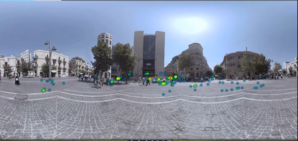 Significant differences were not found when comparing viewing patterns for arrows and the radar. It was observed that participants directed their attention to the speakers and their faces (see Figures 11 and 12), as is usual in 2D content (Kruger, 2012). No significant differences were observed between hearing participants and participants with hearing loss for any of the variables.