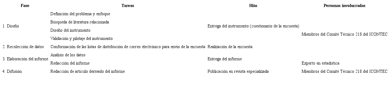 La Tabla 1 sintetiza las cuatro fases generales en que se desarrolló el trabajo.