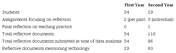 Based on Gibbs’ (2013) framework introduced above, neither set of topics for reflection for the first and second years asked specifically about the role of technology, nor were they meant to be questionnaires but rather a guide for the students to air their thoughts on the experience. Although the individual assignments differed in length and focus, they all belong to the category of reflection-on-action as described above.