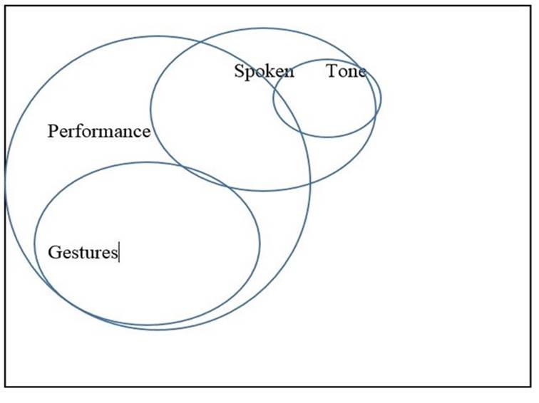 Looking at this episode from a social semiotic perspective highlights the intricate interplay in the interaction. Performance, gestures, speech, and tone of voice in Andrea and Angel’s responses unveiled ways in which meaning was negotiated and achieved through cultural referents illustrating the high mode-complexity therein. Figure 2 below illustrates the mode complexity in the episode.