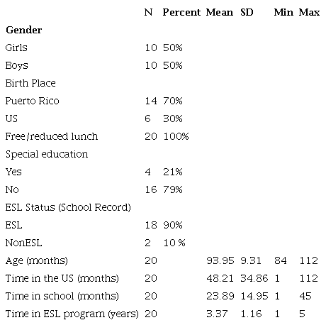 In western New York, APRENDER is a school with 95% of Spanish speaking children of Latino ethnicity, mainly transnationals between Puerto Rico and The United States of America. That is, students are mainly from Puerto Rico; however, their lives happen fluidly between these two countries which have close political ties. The students have different levels of proficiency in both English and Spanish and come from diverse socioeconomic backgrounds.