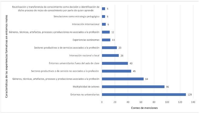 En el proyecto se asumió la categoría “experiencias formativas en entornos reales” para explorar situaciones educativas que permiten a los estudiantes entrar en contacto con espacios, contextos, experiencias y actores adicionales a las experiencias de aula y a la relación diádica con el profesor, que pueden presentarse en cualquier momento de la formación como parte de las asignaturas o de otros espacios formativos (p. ej., grupos de estudio, voluntariados, grupos estudiantiles, grupos de investigación formativa, trabajos de grado, asignaturas que incluyan proyectos con clientes o usuarios reales de servicios y productos). Por eso, las experiencias en entornos reales hacia el inicio o en medio de la formación pueden también ser llamadas “prácticas preprofesionales”, y hacia el final de la formación, “prácticas profesionales” propiamente dichas o “pasantías” (Eady et al., 2021).