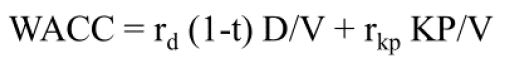 - KP es el valor del capital propio, D es el valor de la deuda y V es el valor total de los activos o el capital de la empresa (V – D + KP).