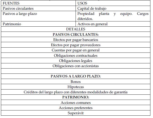 Por lo general, se habla de estructura financiera cuando se reconoce a todas las fuentes de financiamiento, vale decir, tanto de corto como de largo plazo. Al respecto el investigador lo resume de la siguiente manera: presenta una simplificación de una estructura financiera, la cual se da con mucha frecuencia en nuestro medio en cualquiera de las empresas mencionadas, aunque no dejo de reconocer la gama de posibilidades que contablemente pueden existir, de acuerdo a las características propias que una empresa pueda tener.