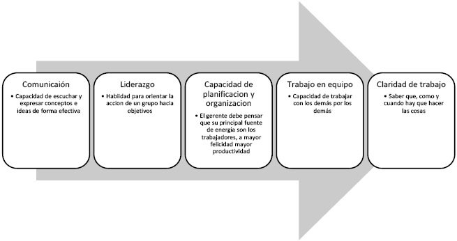 Liderazgo y trabajo en equipo: Varias mentes piensan mejor que una, el trabajo en equipo propicia la formación entre los trabajadores, aprendizaje de los procesos productivos y el compañerismo, esto requiere un líder formado, capaz de incentivar y mejorar continuamente los procesos productivos.