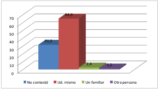 ¿Quiénes usan los canales interactivos? Titulares, 64,9%; un familiar del titular, 2,4% y otra persona, 1,2% (Gráfico 4). No contestó, 35,5%. Hallazgo interesante para el análisis.
